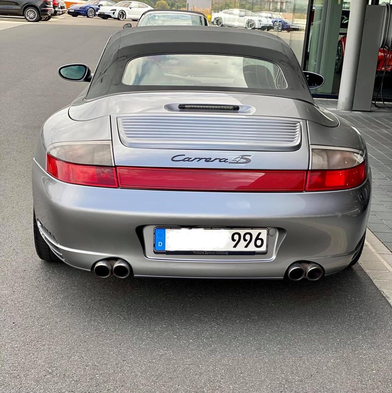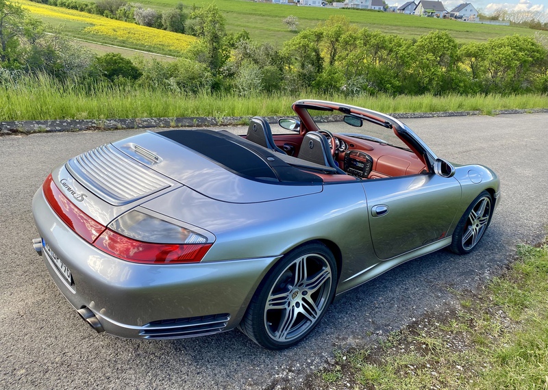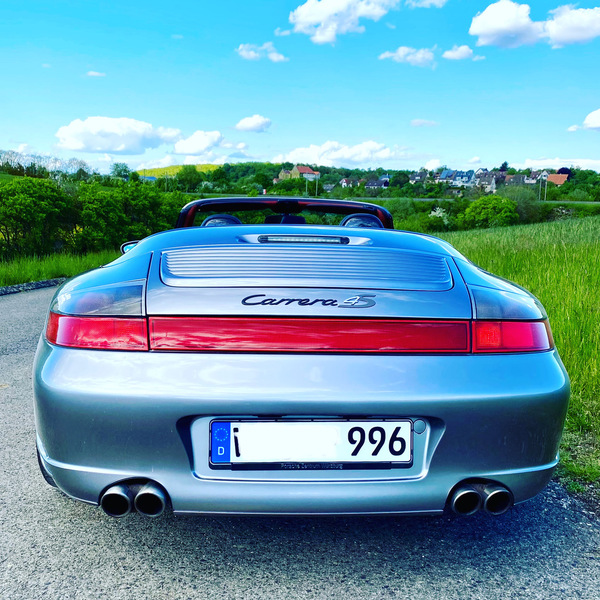 Mit ihm begann in der 911er-Baureihe eine neue Ära. Alle bis dahin produzierten 911er hatten einen luftgekühlten Sechszylinder-Boxermotor; seit dem 996 haben sie einen Sechszylinder-Boxermotor mit Wasserkühlung. Dies wurde notwendig, um die Verbrauchs- und Abgasvorschriften zusammen mit den intern gesetzten Ansprüchen hinsichtlich Motorenleistung zu erfüllen. Es gibt das Fahrzeug mit einem Sechsgang-Schaltgetriebe oder wie hier, mit einem Tiptronic genannten Automatikgetriebe. Beim Carrera gibt es als Alternative zum Heckantrieb wie hier bei dem Carrera 4S den Allradantrieb. Ab den Modelljahr 2002 wurde der Carrera 4S eingeführt, max. Drehmoment 370 Nm, Hubraum 3596 ccm, 320 PS bzw. mit WLS 345 PS, Beschleunigung von 0-100 Km/h 5,6S max. Höchstgeschwindigkeit 280 Km/h