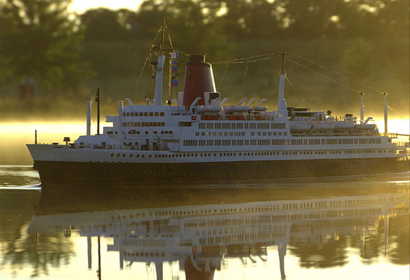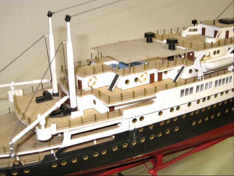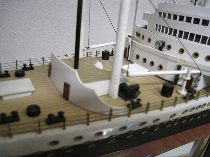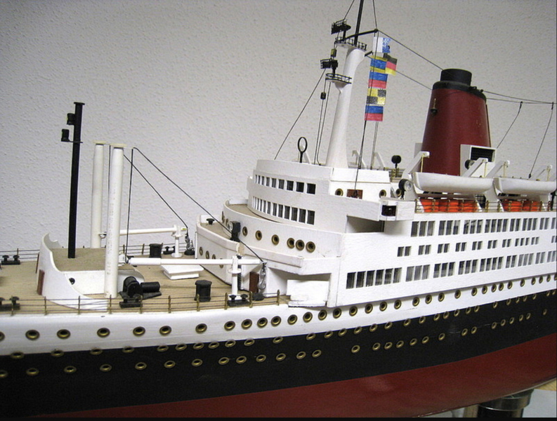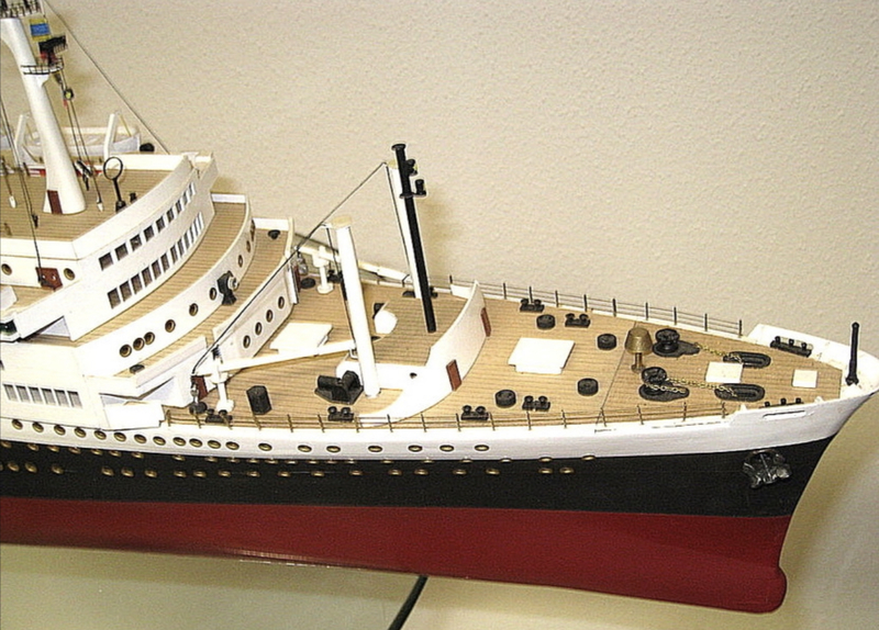 Das Modell ist im Maßstab 1:200 und überwiegend aus Holz gebaut, Länge 106 cm